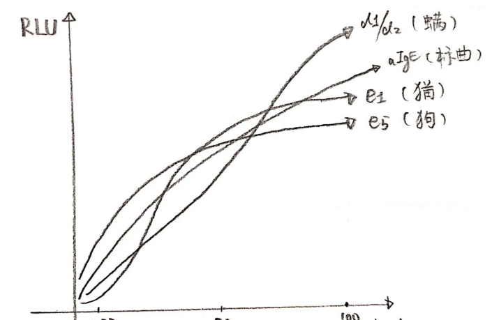 我們來(lái)分析一下他這句話的意思,尤其是第二點(diǎn)。由于曲線和各個(gè)特異性項(xiàng)目采用的是相同的酶,所以我們可以想象在一個(gè)理想狀態(tài)下,如果特異性項(xiàng)目和曲線測(cè)出來(lái)的熒光值相同,那么就可以證明此時(shí)特異性項(xiàng)目抓住的sIgE和曲線抓住的tIgE的量是相同的;但是有一個(gè)問(wèn)題,這兩者各自的“抓取效率”如何呢?